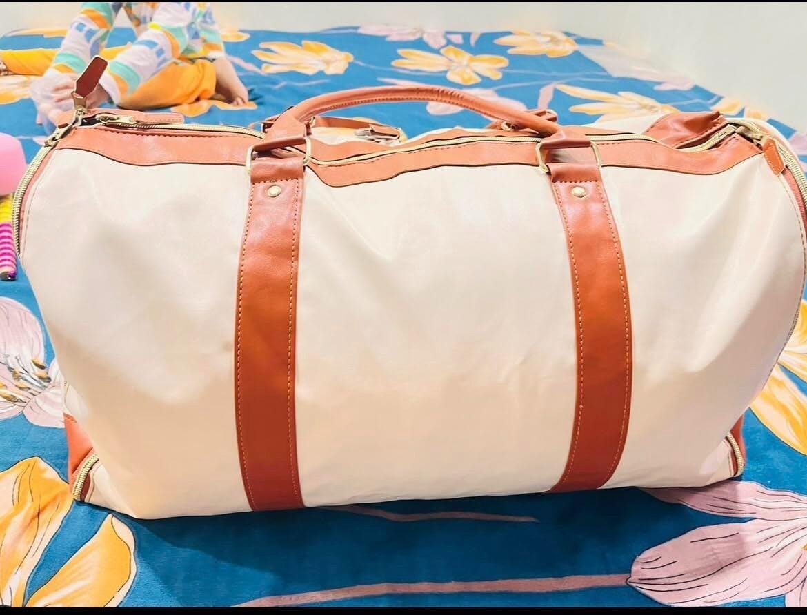 Travel smarter with this 2-in-1 Convertible Garment Bag & Duffle Bag, designed especially for women who want style and convenience in one place. This spacious travel bag unfolds into a hanging garment organizer—perfect for keeping dresses, suits, and outfits wrinkle-free. When folded, it transforms into a trendy color-block duffle ideal for weekend trips, gym, or casual travel. Made from durable PU and nylon, it’s lightweight, stylish, and built for everyday travel needs.